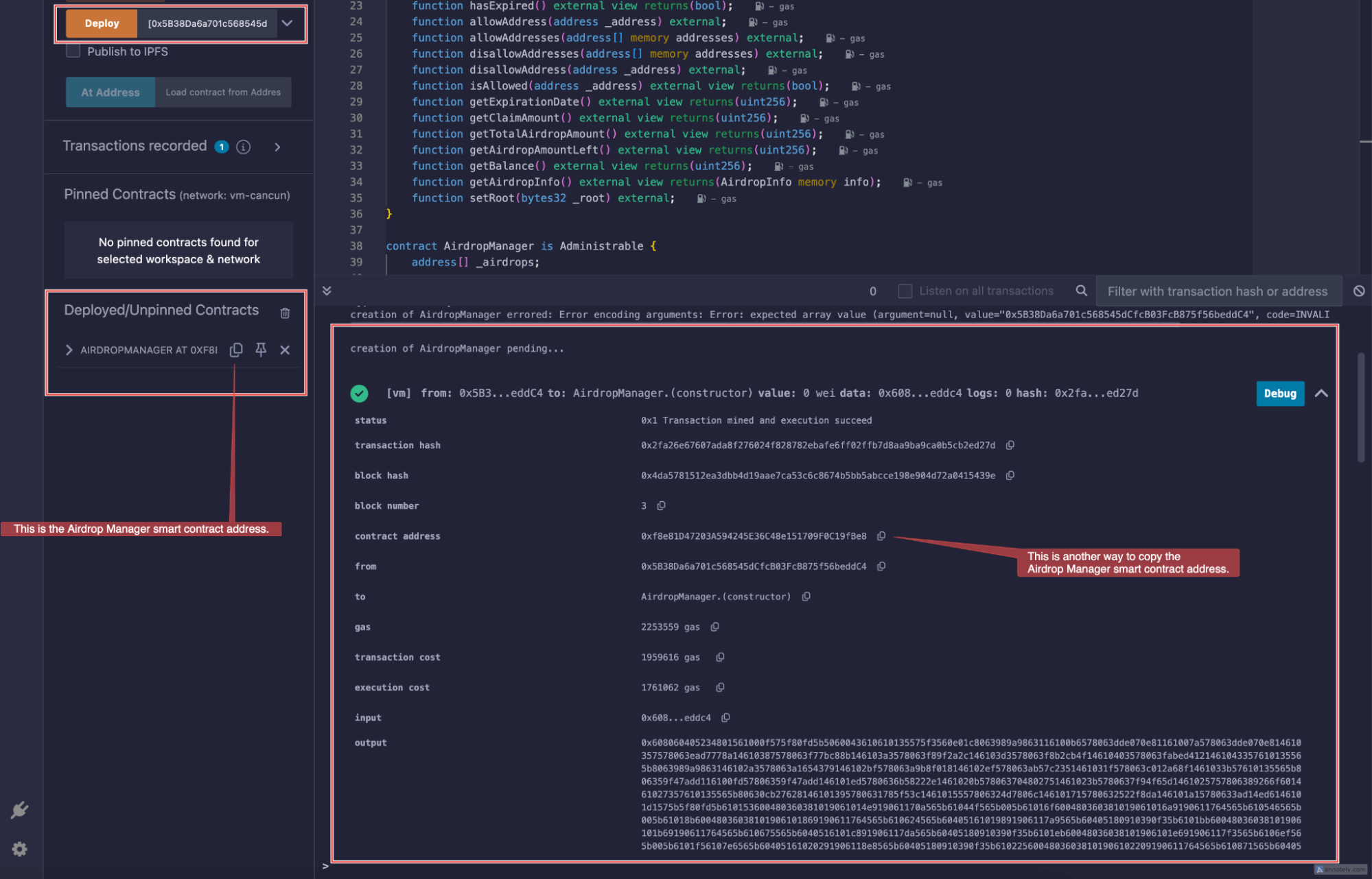 AirdropManager. - This address will be required in your Airdrop UI project.
