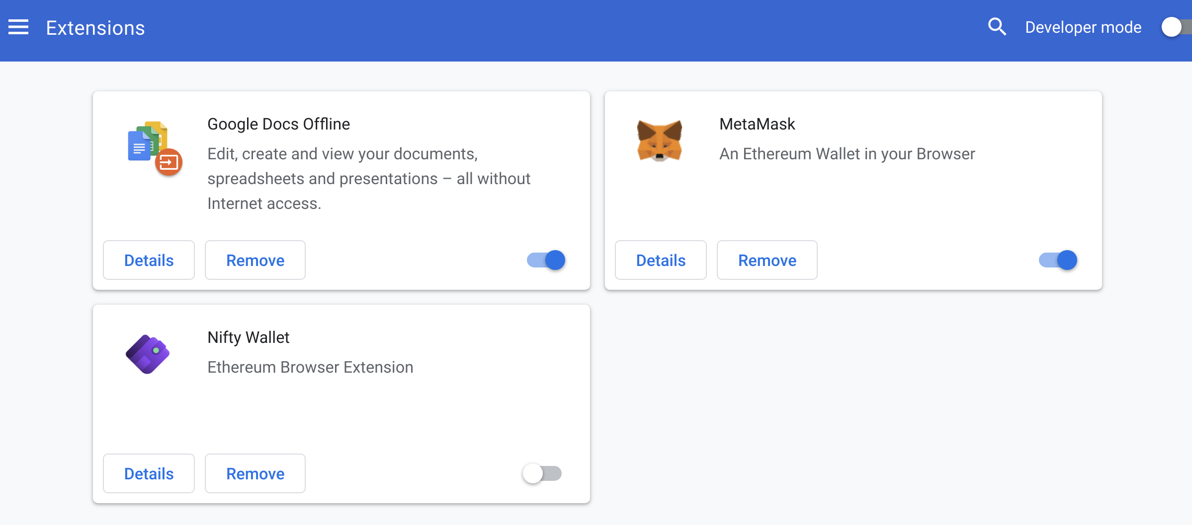 If you have more than one Web3 browser extension installed, for example, if you have either MetaMask, Liquality or Nifty, be aware that they can conflict with each other.